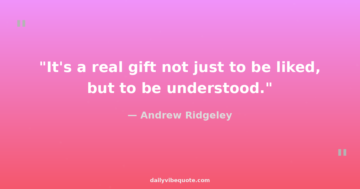 "It's a real gift not just to be liked, but to be understood."