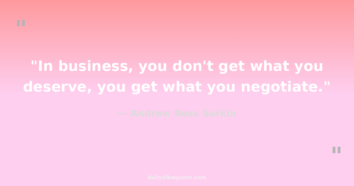 "In business, you don't get what you deserve, you get what you negotiate."