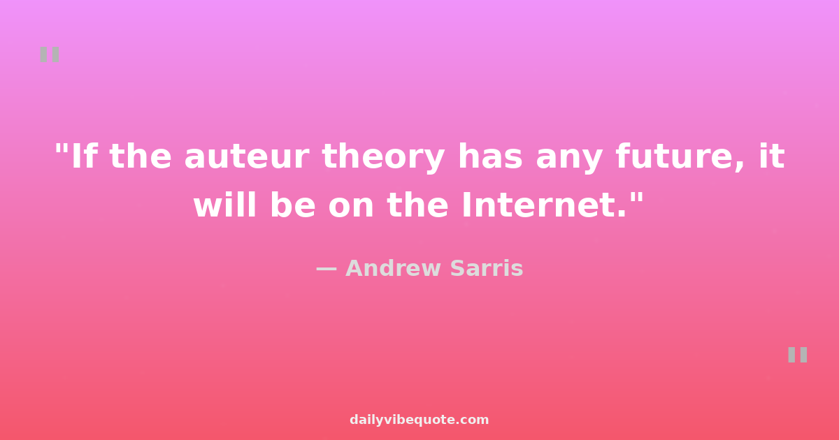 "If the auteur theory has any future, it will be on the Internet."