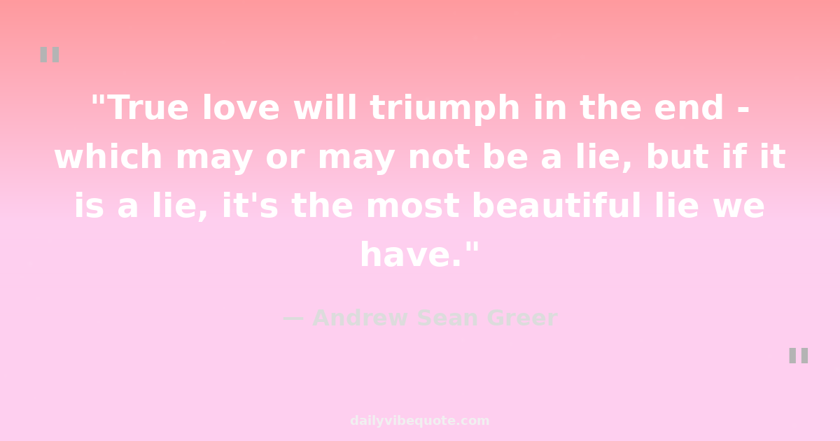 "True love will triumph in the end - which may or may not be a lie, but if it is a lie, it's the most beautiful lie we have."