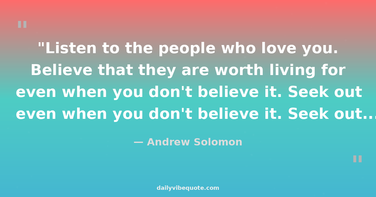 "Listen to the people who love you. Believe that they are worth living for even when you don't believe it. Seek out the memories depression takes away and project them into the future."