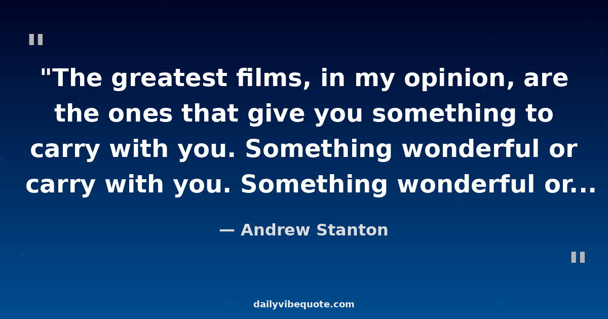 "The greatest films, in my opinion, are the ones that give you something to carry with you. Something wonderful or meaningful, something worth thinking about."