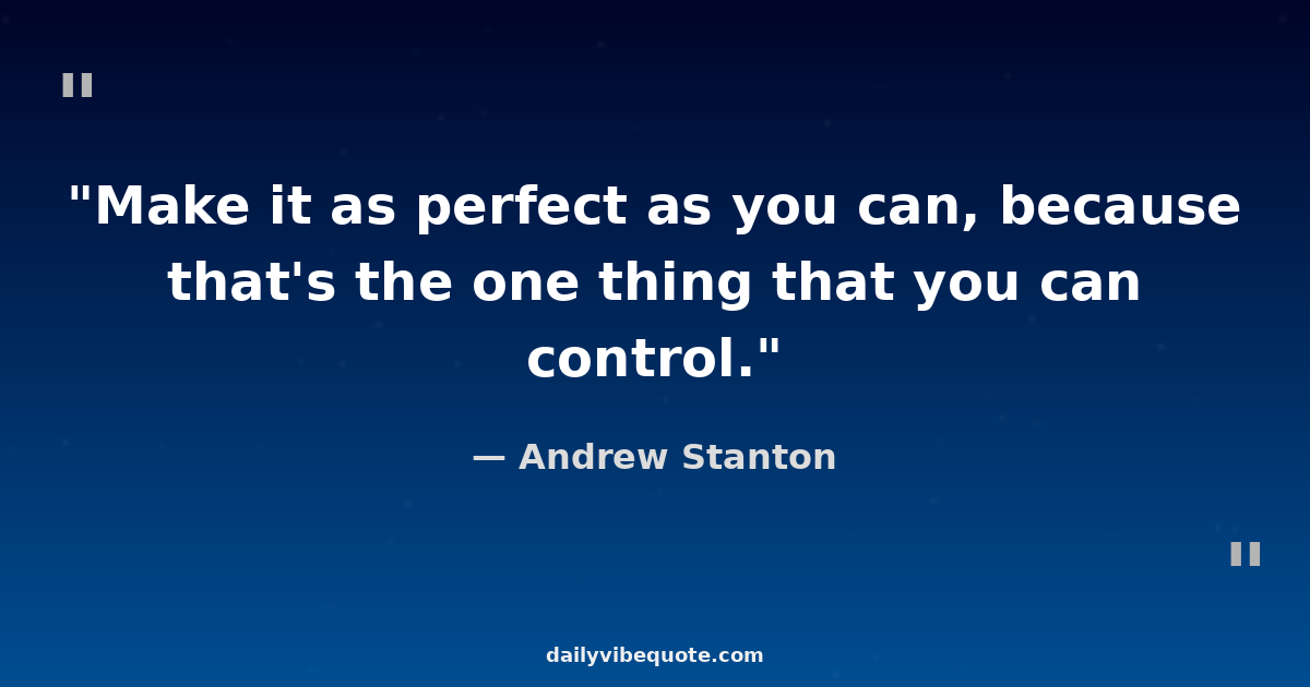 "Make it as perfect as you can, because that's the one thing that you can control."