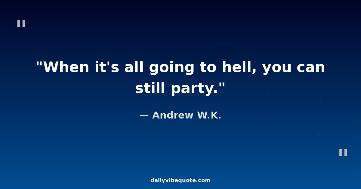 Andrew Fetterly Wilkes-Krier, known professionally as Andrew W.K., is an American musician, singer, songwriter, and multi-instrumentalist. He gained recognition for his energetic and upbeat rock music, characterized by his positive and motivational lyrics. Andrew W.K. released his debut album 'I Get Wet' in 2001, which included the popular single 'Party Hard.' Apart from his music career, he is also known for his motivational speaking engagements and his philosophy of promoting a positive outlook on life through music and partying.