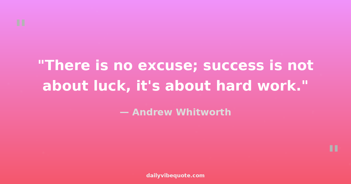 "There is no excuse; success is not about luck, it's about hard work."