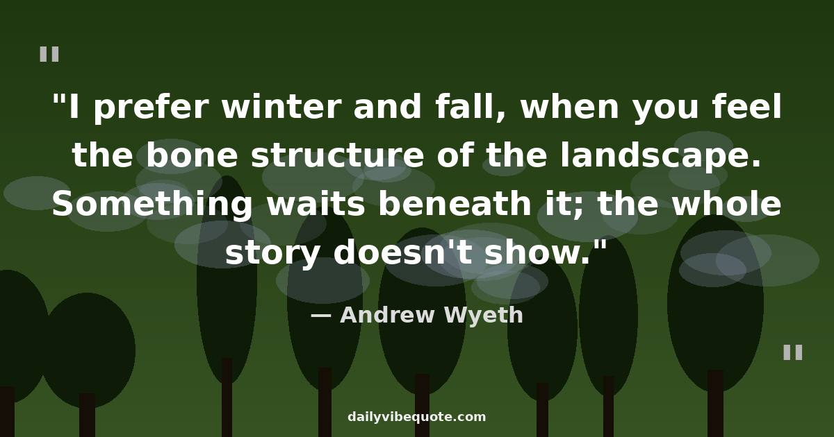 "I prefer winter and fall, when you feel the bone structure of the landscape. Something waits beneath it; the whole story doesn't show."