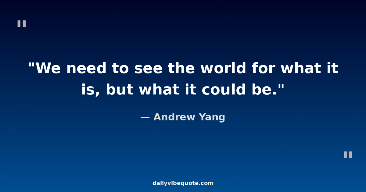 "We need to see the world for what it is, but what it could be."