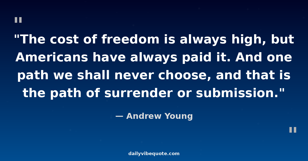 "The cost of freedom is always high, but Americans have always paid it. And one path we shall never choose, and that is the path of surrender or submission."