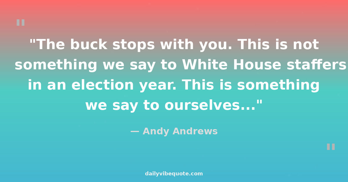 "The buck stops with you. This is not something we say to White House staffers in an election year. This is something we say to ourselves..."