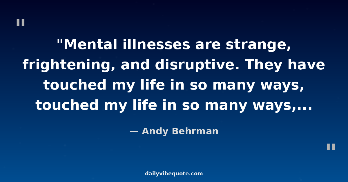 "Mental illnesses are strange, frightening, and disruptive. They have touched my life in so many ways, propelling me to create, yet crushing me when I felt creative."