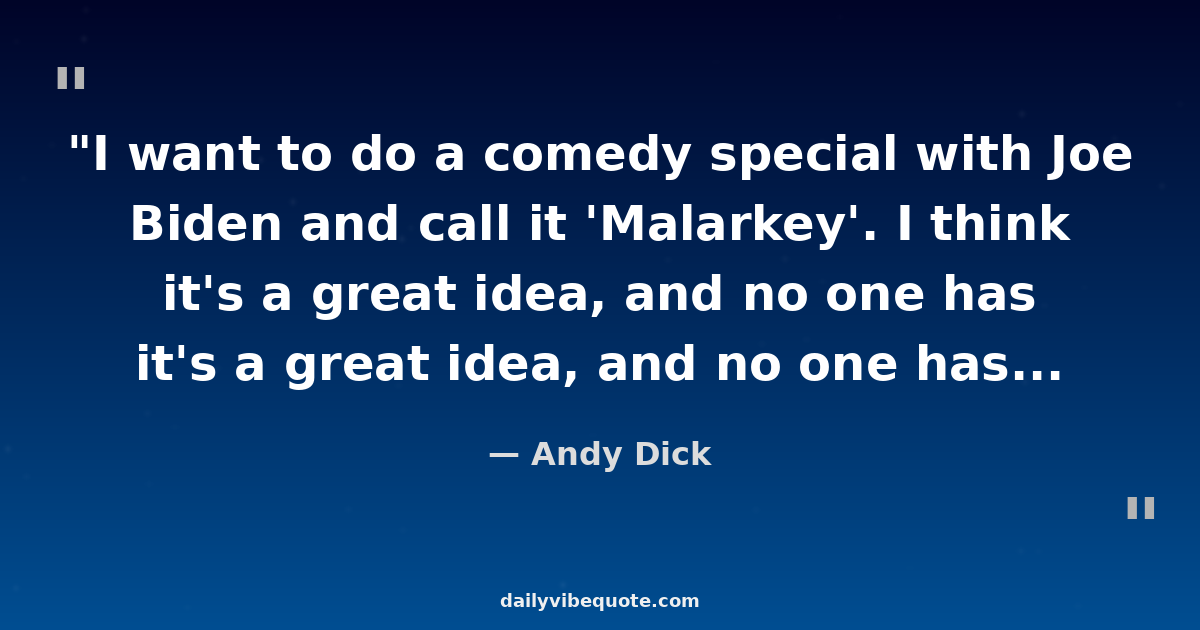 "I want to do a comedy special with Joe Biden and call it 'Malarkey'. I think it's a great idea, and no one has reached out to me, so I'll just keep saying it until it happens."