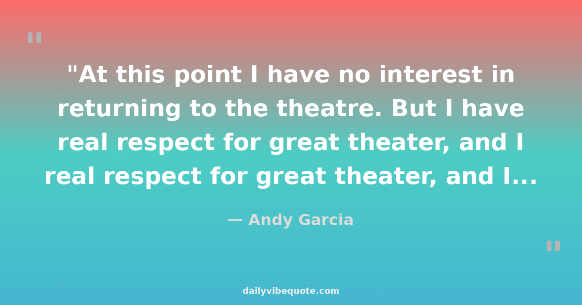 "At this point I have no interest in returning to the theatre. But I have real respect for great theater, and I would never rule out the possibility of working in the theatre again."