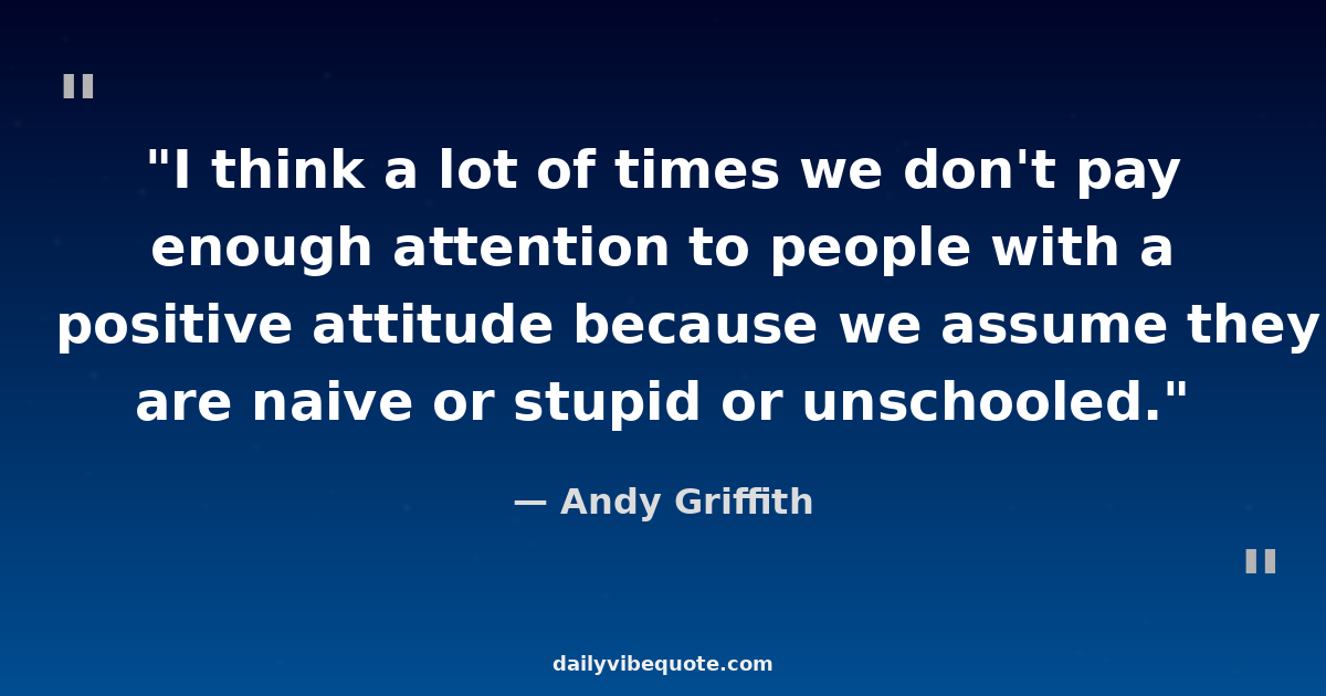 "I think a lot of times we don't pay enough attention to people with a positive attitude because we assume they are naive or stupid or unschooled."