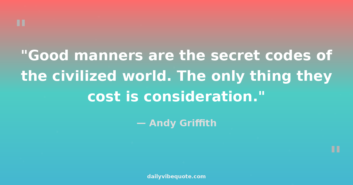 "Good manners are the secret codes of the civilized world. The only thing they cost is consideration."