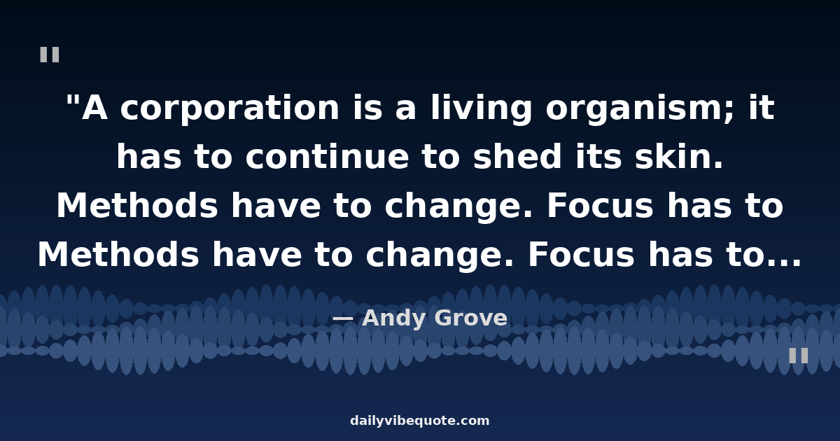 "A corporation is a living organism; it has to continue to shed its skin. Methods have to change. Focus has to change. Values have to change. The sum total of those changes is transformation."