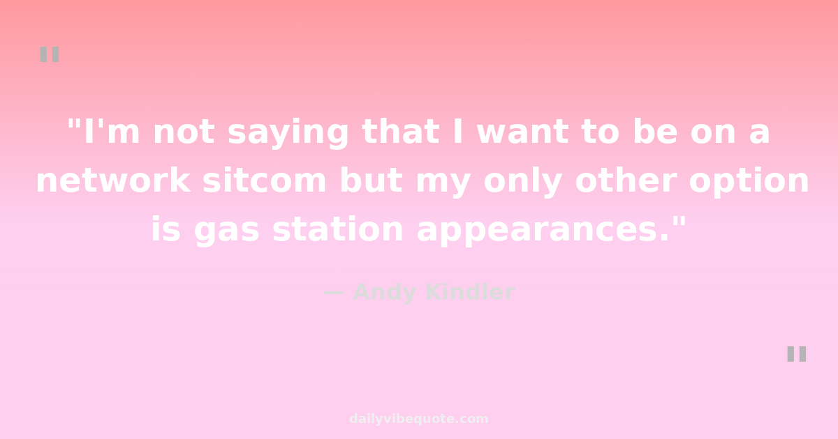 "I'm not saying that I want to be on a network sitcom but my only other option is gas station appearances."
