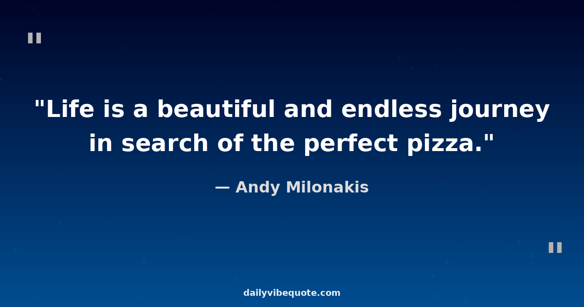 "Life is a beautiful and endless journey in search of the perfect pizza."