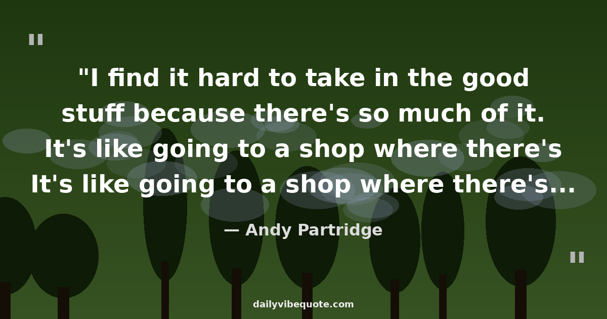 "I find it hard to take in the good stuff because there's so much of it. It's like going to a shop where there's a lot on sale at half price. Everything has some kind of appeal."