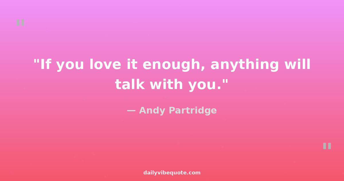 "If you love it enough, anything will talk with you."