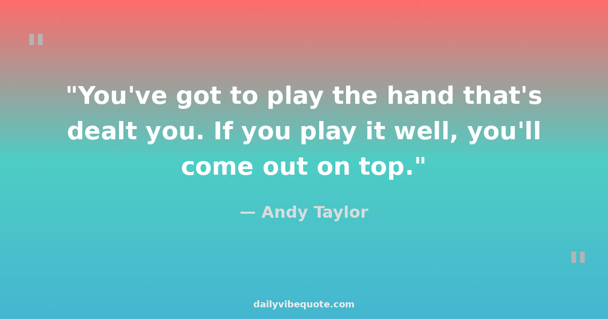 "You've got to play the hand that's dealt you. If you play it well, you'll come out on top."