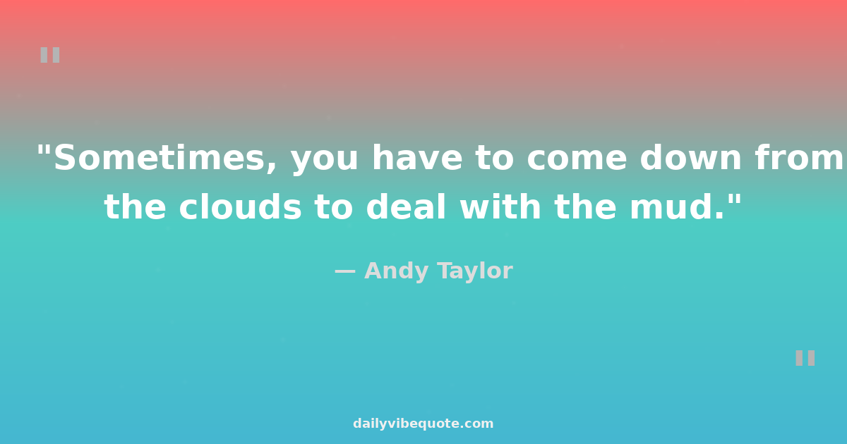 "Sometimes, you have to come down from the clouds to deal with the mud."