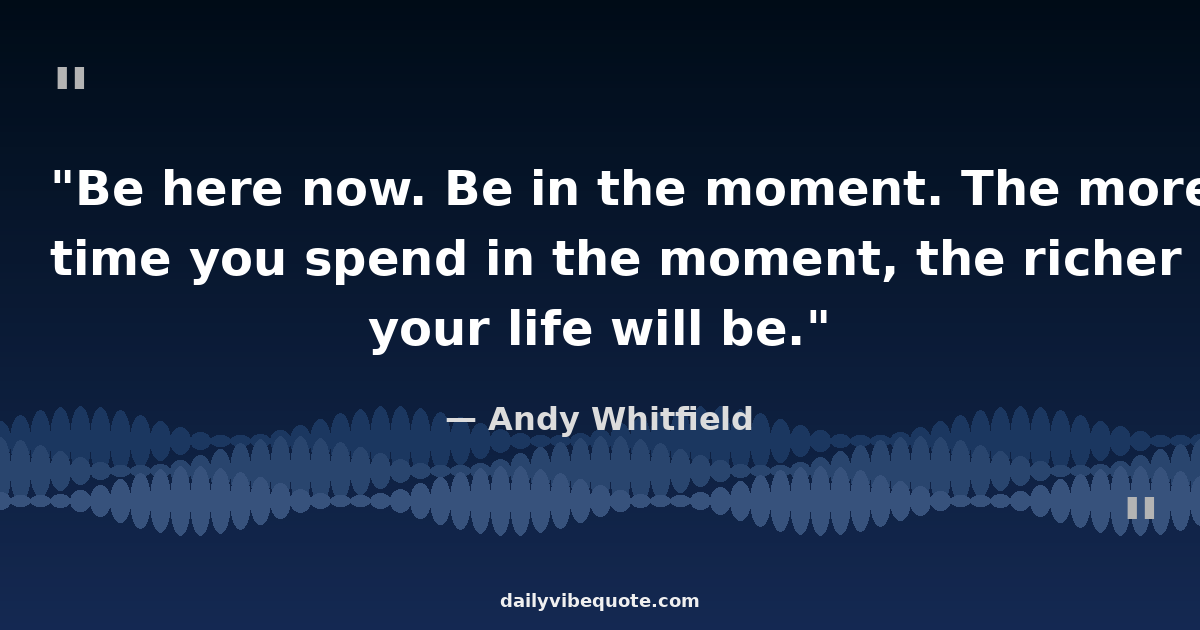 "Be here now. Be in the moment. The more time you spend in the moment, the richer your life will be."