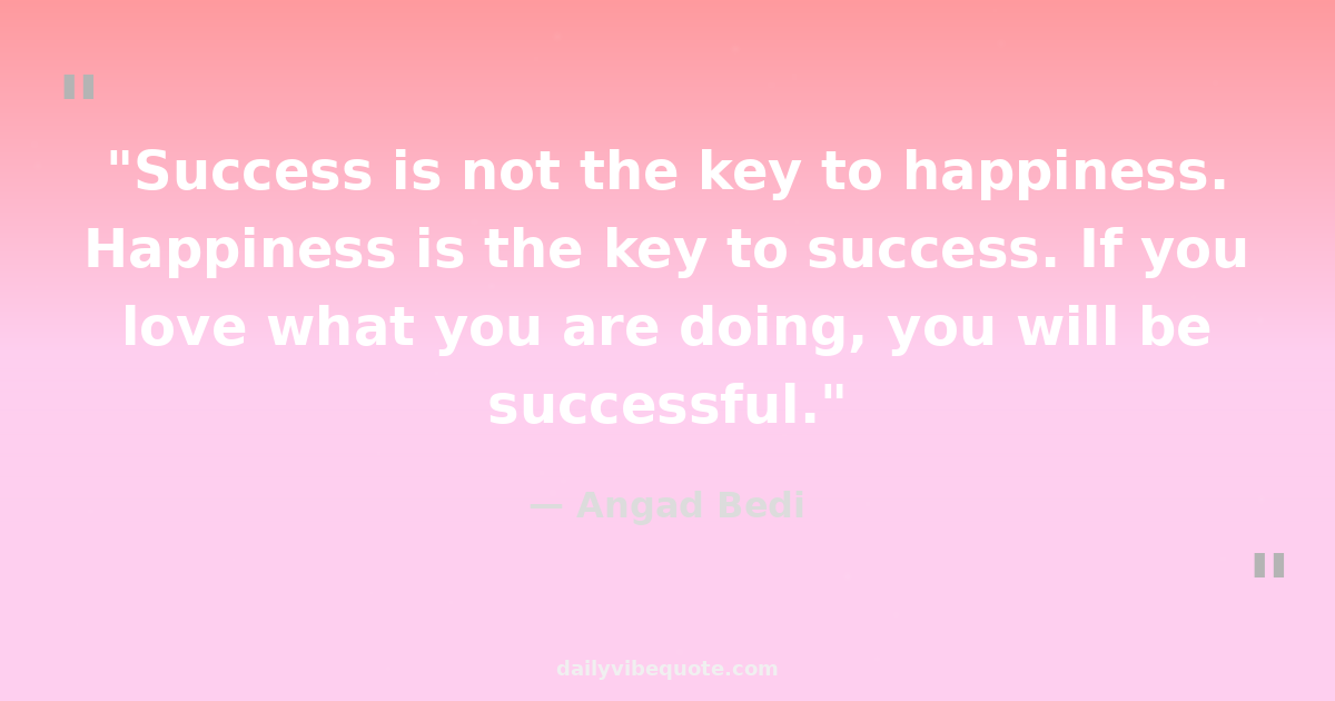 "Success is not the key to happiness. Happiness is the key to success. If you love what you are doing, you will be successful."