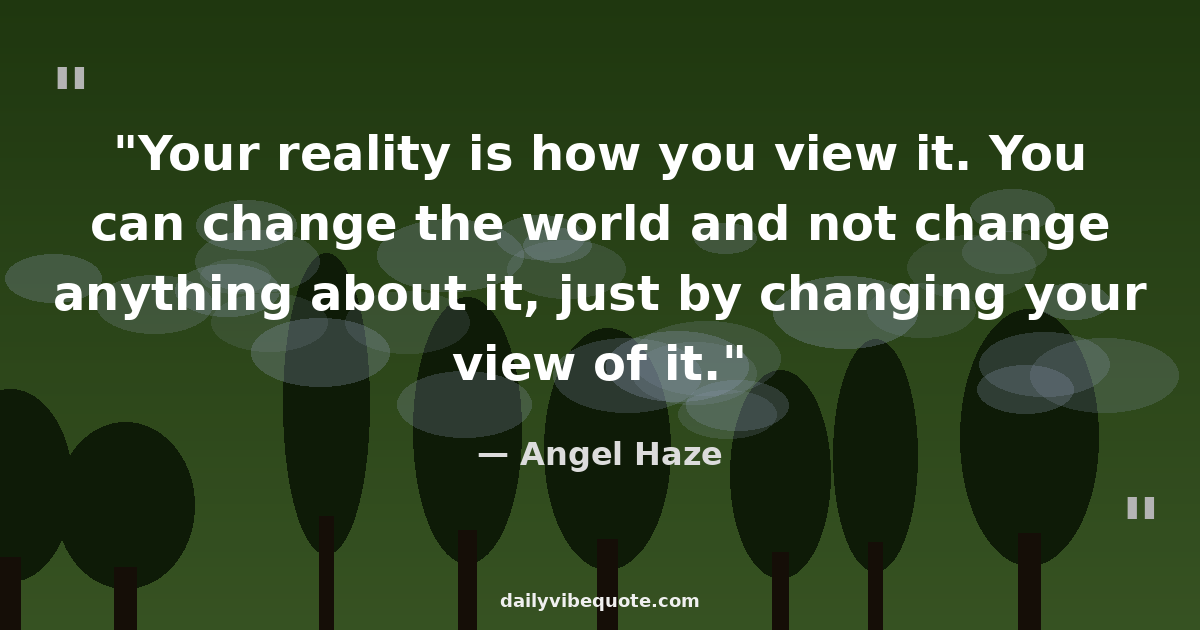 "Your reality is how you view it. You can change the world and not change anything about it, just by changing your view of it."