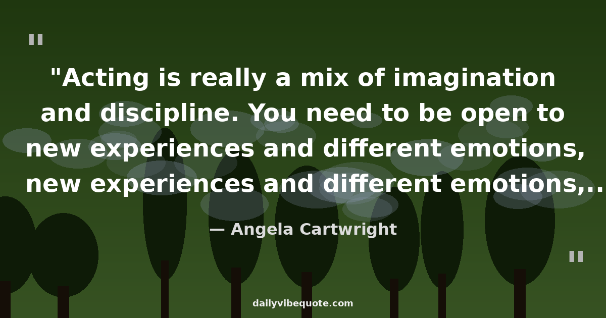 "Acting is really a mix of imagination and discipline. You need to be open to new experiences and different emotions, yet also have the ability to focus and stay dedicated to the craft."