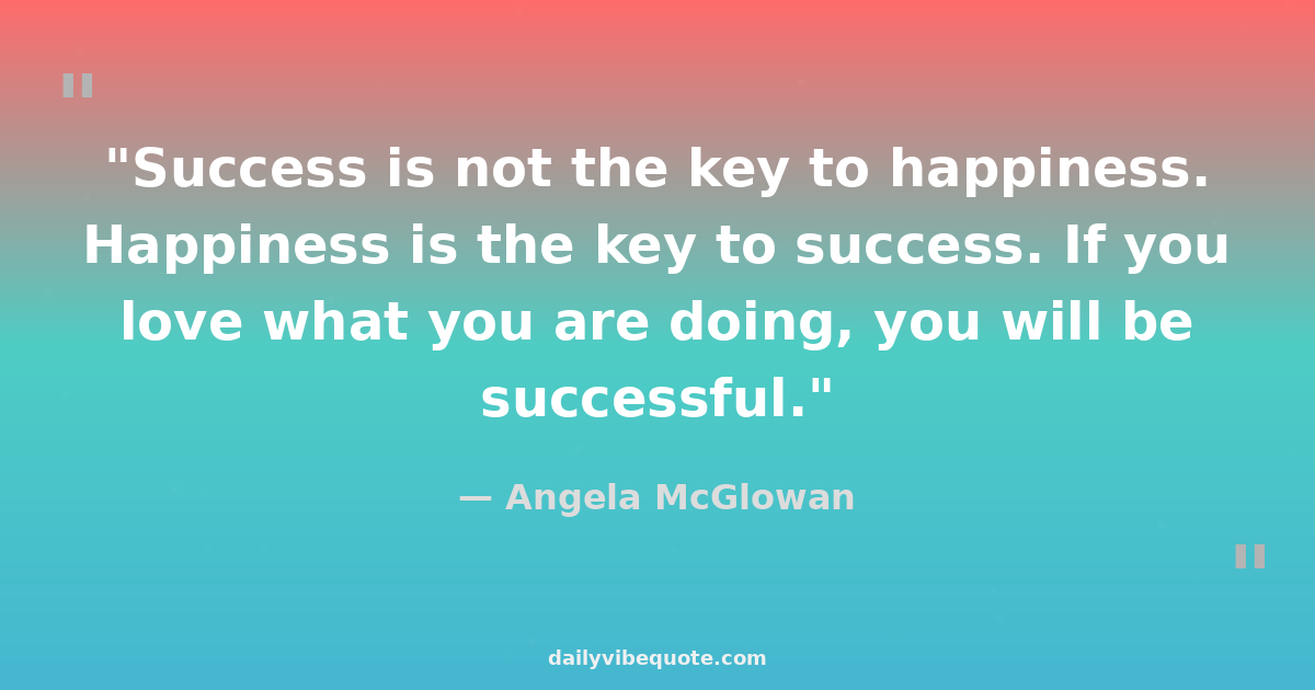 "Success is not the key to happiness. Happiness is the key to success. If you love what you are doing, you will be successful."