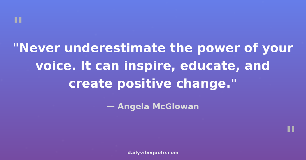 "Never underestimate the power of your voice. It can inspire, educate, and create positive change."