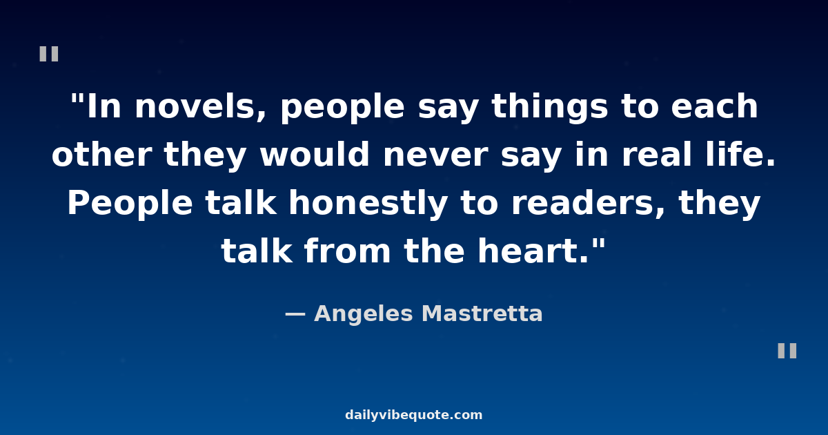 "In novels, people say things to each other they would never say in real life. People talk honestly to readers, they talk from the heart."