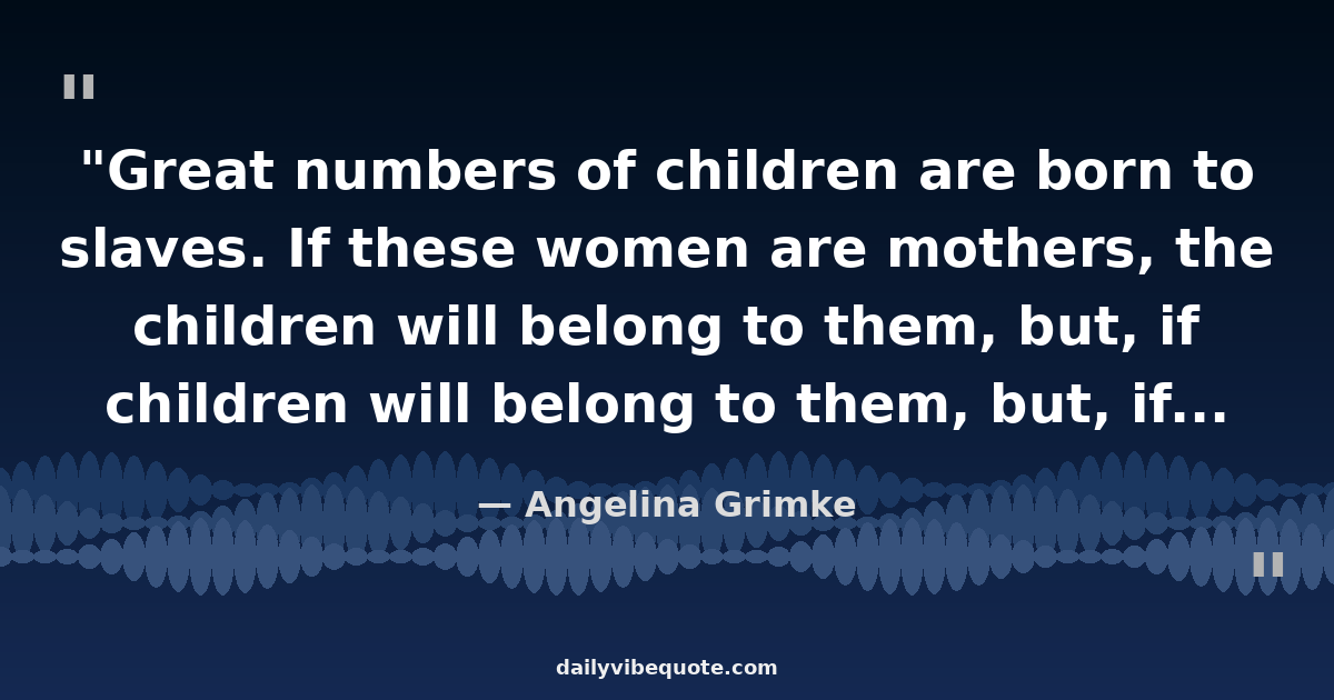 "Great numbers of children are born to slaves. If these women are mothers, the children will belong to them, but, if so, there will be nothing to smooth the brow of death from the marble brow of life."