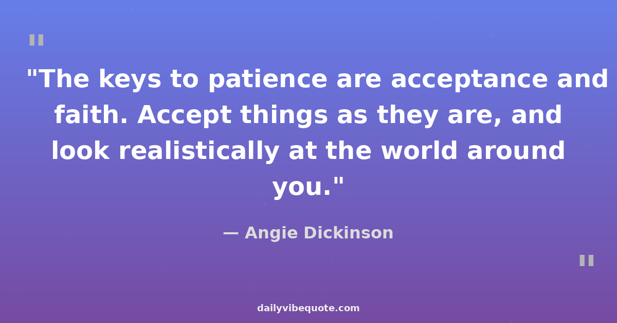 "The keys to patience are acceptance and faith. Accept things as they are, and look realistically at the world around you."