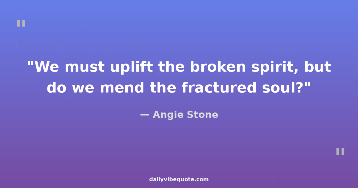 "We must uplift the broken spirit, but do we mend the fractured soul?"
