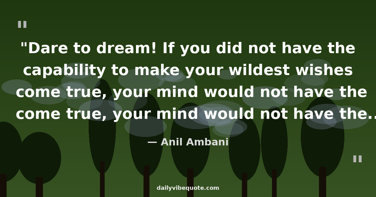 "Dare to dream! If you did not have the capability to make your wildest wishes come true, your mind would not have the capacity to conjure such ideas in the first place."