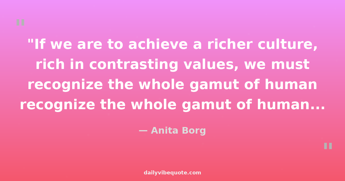 "If we are to achieve a richer culture, rich in contrasting values, we must recognize the whole gamut of human potentialities, and so weave a less arbitrary social fabric, one in which each diverse human gift will find a fitting place."