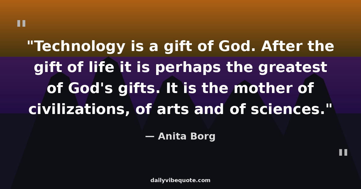 "Technology is a gift of God. After the gift of life it is perhaps the greatest of God's gifts. It is the mother of civilizations, of arts and of sciences."