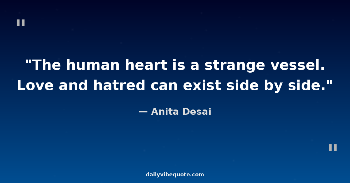 "The human heart is a strange vessel. Love and hatred can exist side by side."