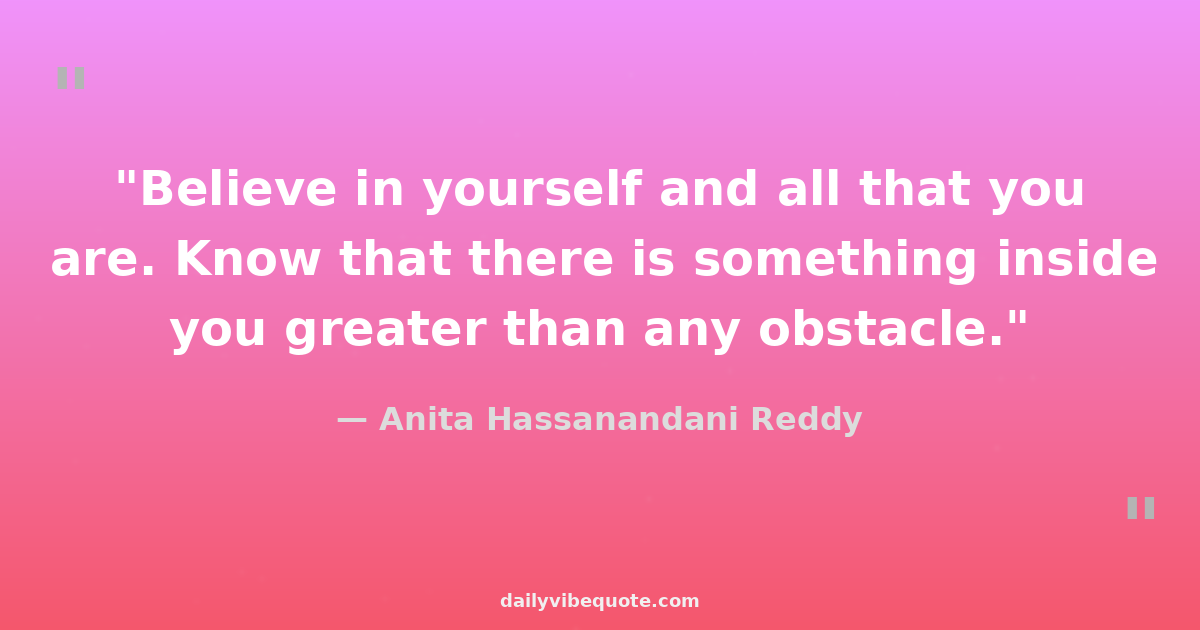 "Believe in yourself and all that you are. Know that there is something inside you greater than any obstacle."