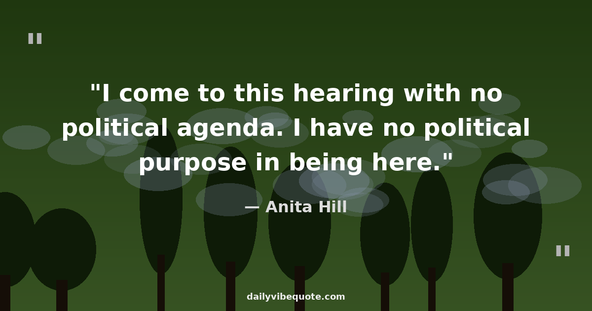 "I come to this hearing with no political agenda. I have no political purpose in being here."