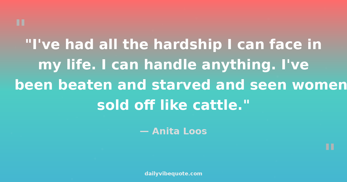 "I've had all the hardship I can face in my life. I can handle anything. I've been beaten and starved and seen women sold off like cattle."