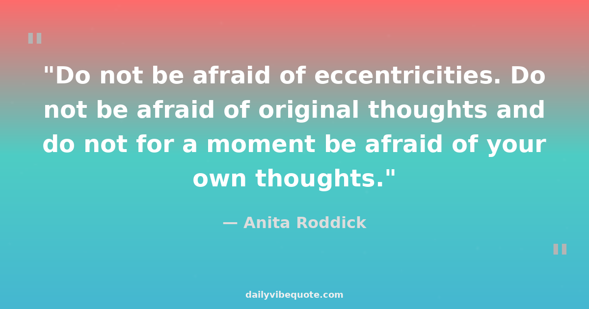"Do not be afraid of eccentricities. Do not be afraid of original thoughts and do not for a moment be afraid of your own thoughts."