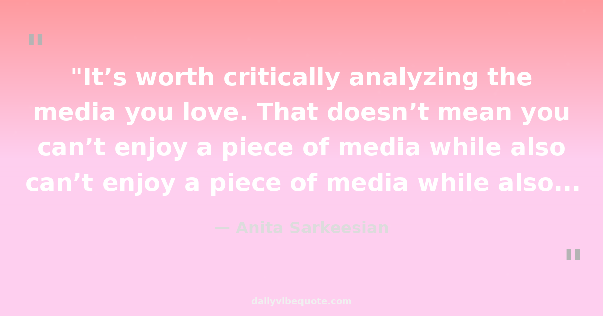 "It’s worth critically analyzing the media you love. That doesn’t mean you can’t enjoy a piece of media while also being critical of its more problematic or pernicious aspects."