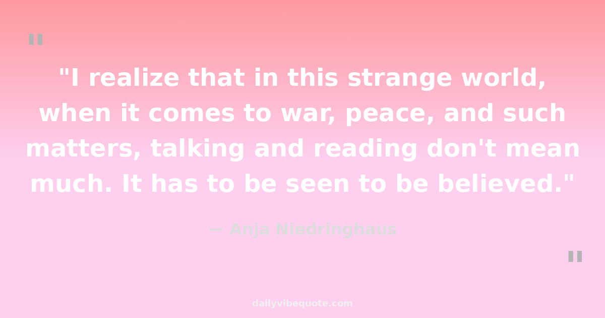 "I realize that in this strange world, when it comes to war, peace, and such matters, talking and reading don't mean much. It has to be seen to be believed."