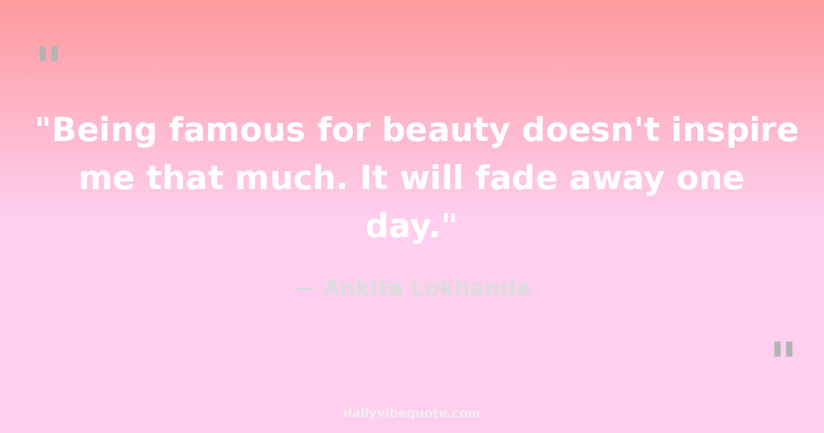 "Being famous for beauty doesn't inspire me that much. It will fade away one day."