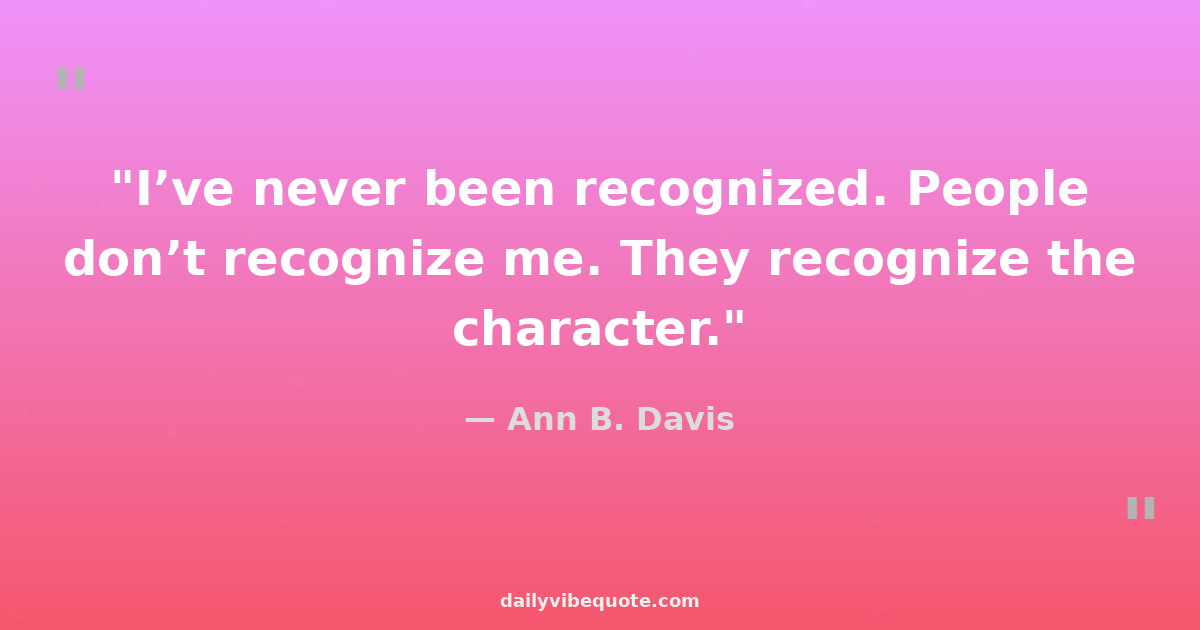 "I’ve never been recognized. People don’t recognize me. They recognize the character."