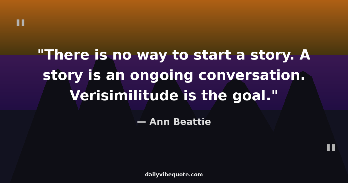 "There is no way to start a story. A story is an ongoing conversation. Verisimilitude is the goal."