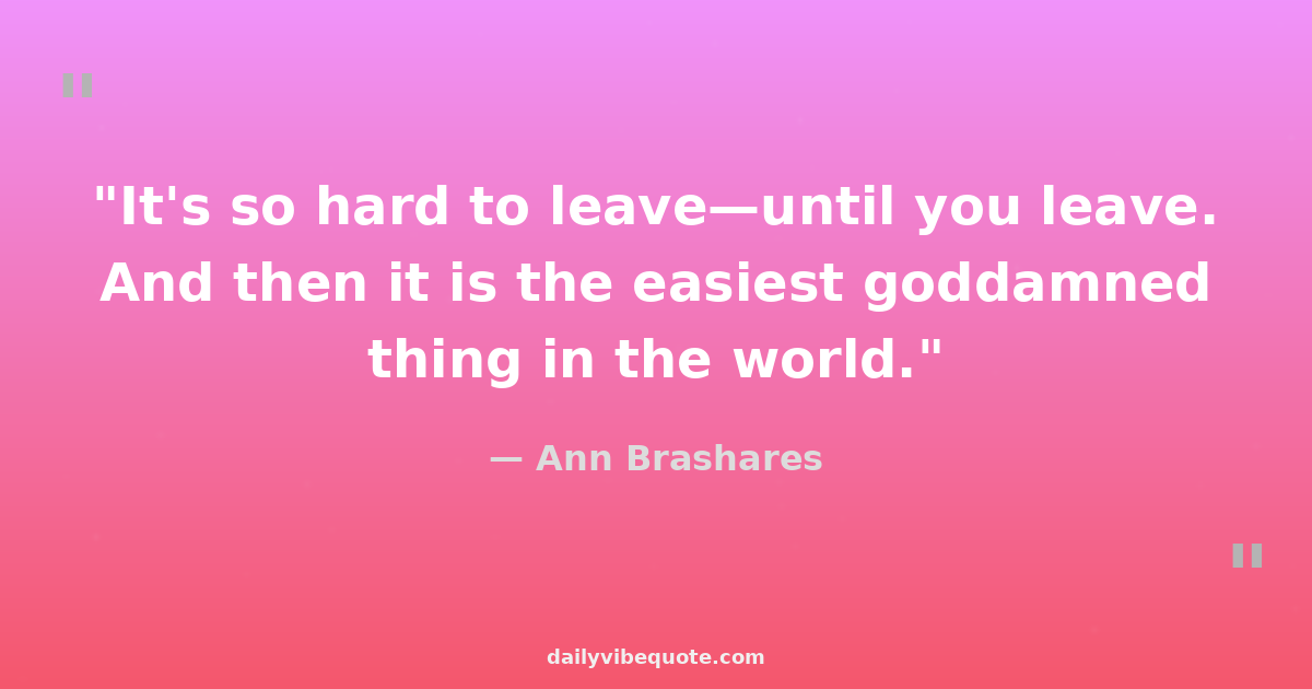 "It's so hard to leave—until you leave. And then it is the easiest goddamned thing in the world."