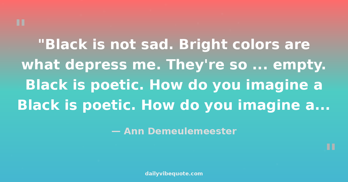 "Black is not sad. Bright colors are what depress me. They're so ... empty. Black is poetic. How do you imagine a poet? In a bright yellow jacket? Probably not."